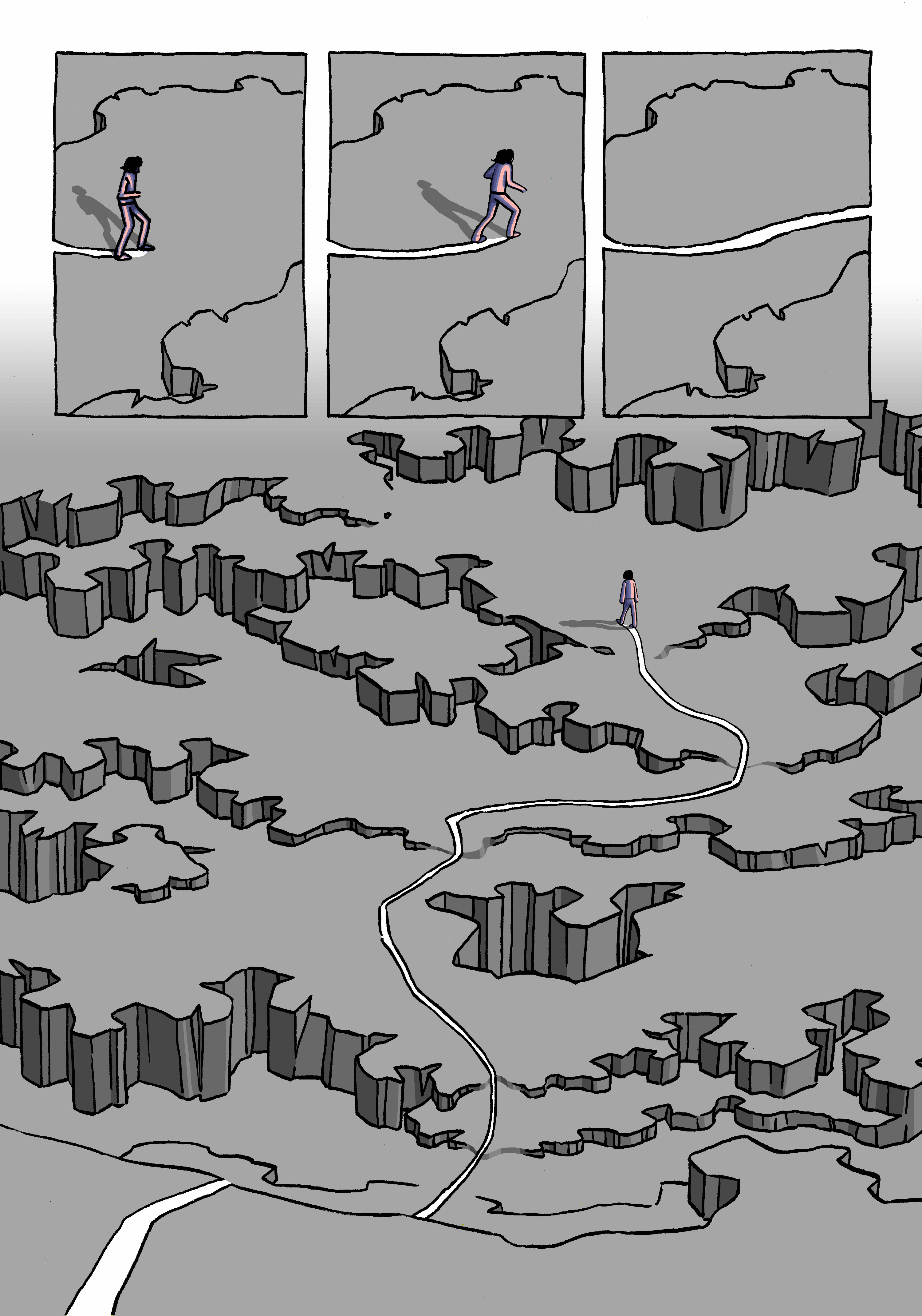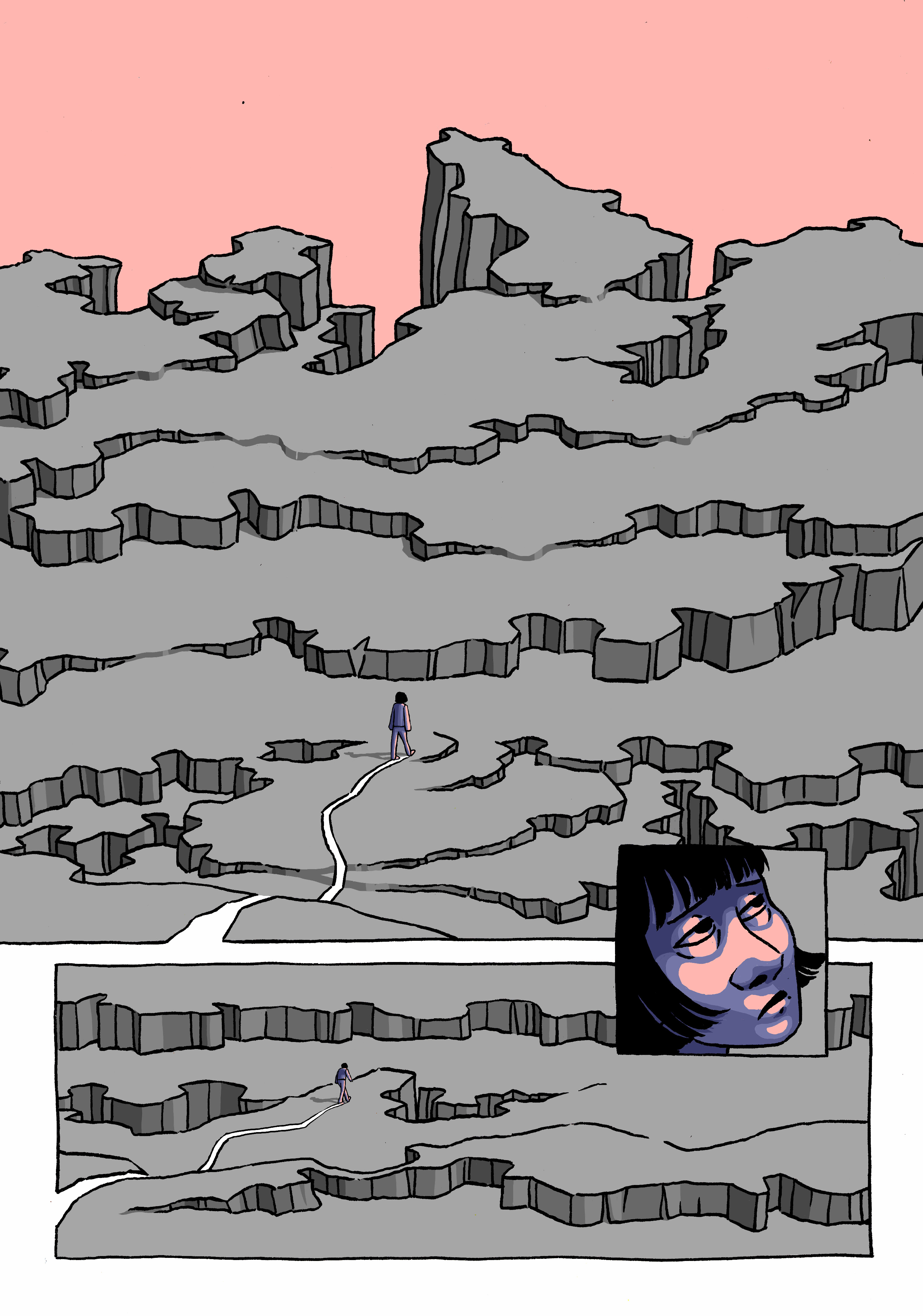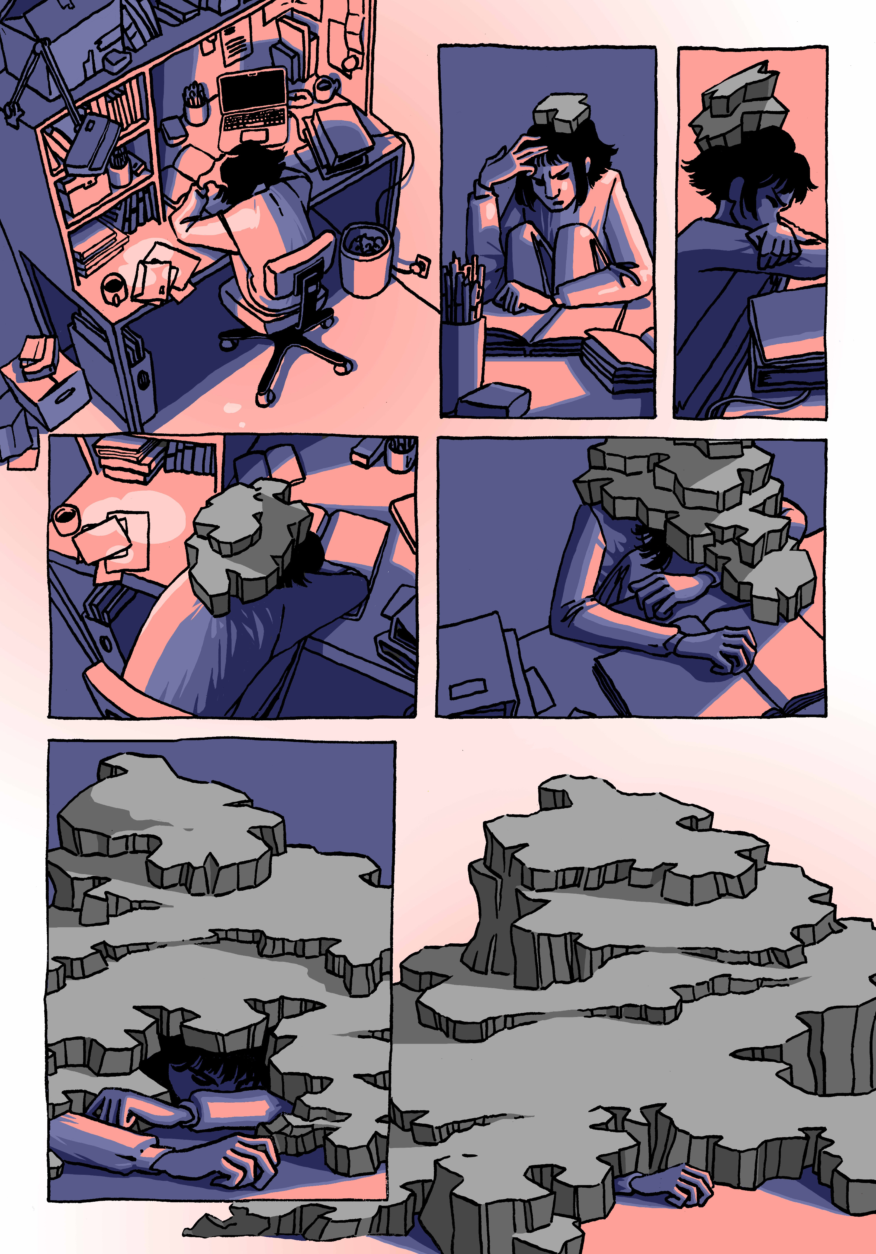 Réalisées pour le concours Fumetto pour la relève en bande dessinée 2025, ces planches s’inscrivent dans une réflexion autour du thème « PEAK ».